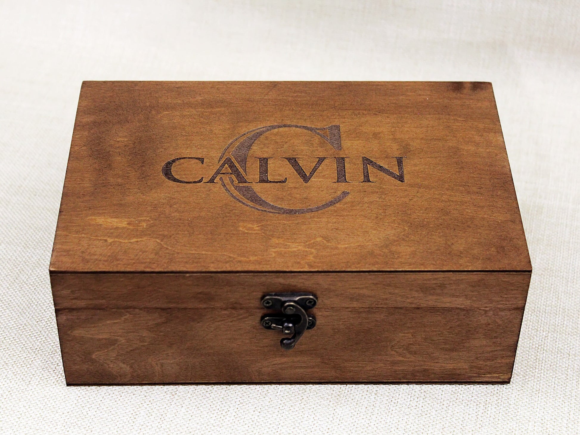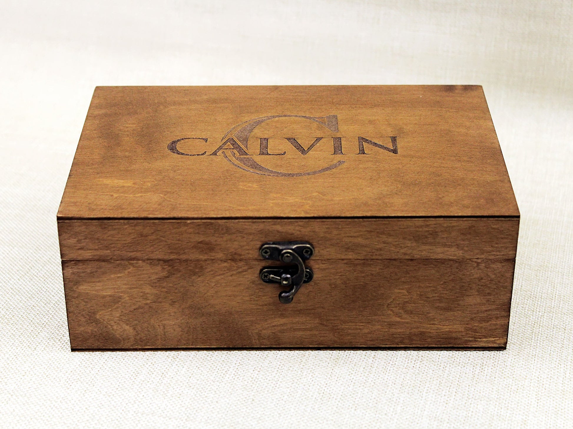 The design for your personalized wooden box will be laser engraved, which guarantees precise contours and perfectly aligned letters.
