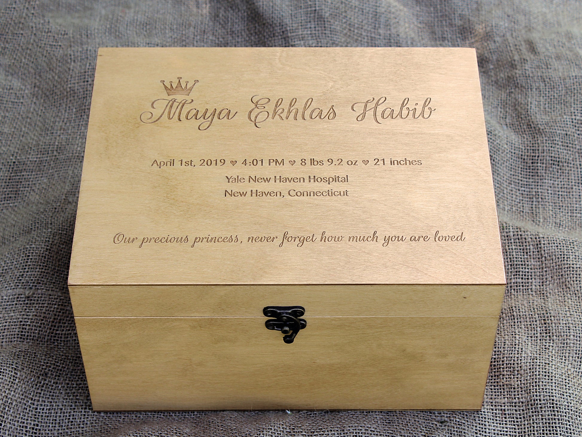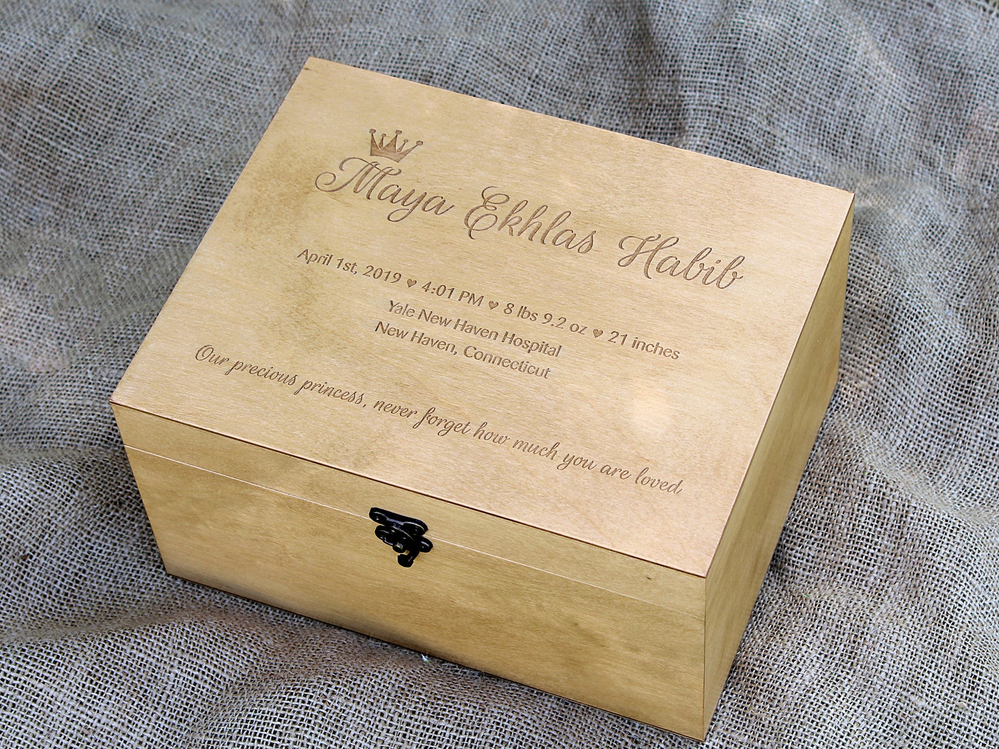 Every princess has a story... It starts with really small slippers, bodysuits, a tiny hairbrush, and a few favorite rattles. Keep these precious little reminders in a special wood box made just for your little princess.