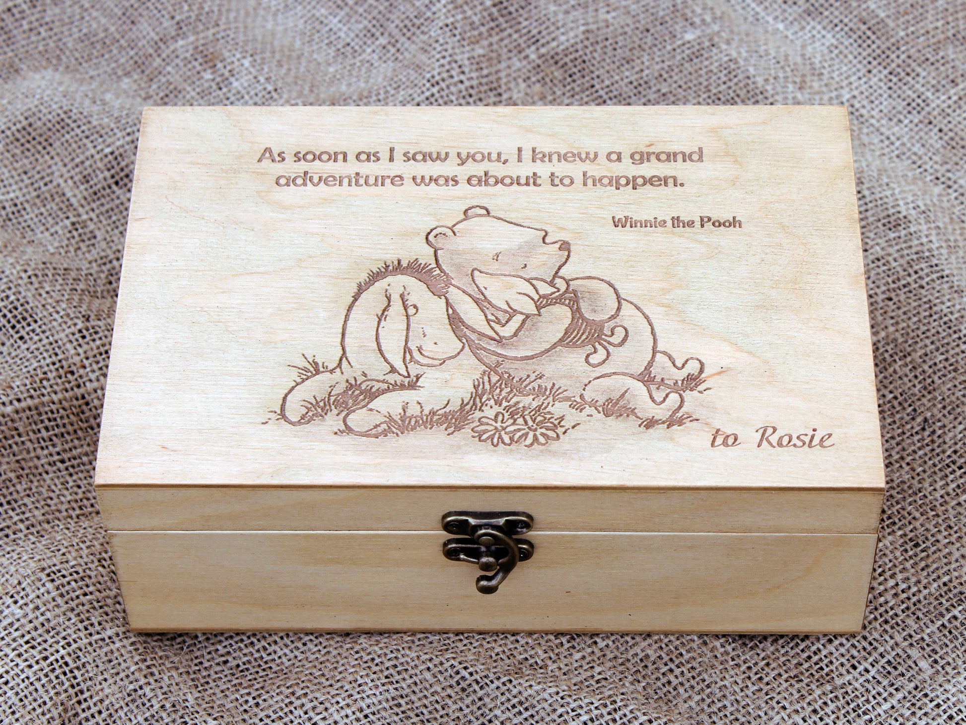Personalized jewelry box, Winnie the pooh quote and image on wooden box
